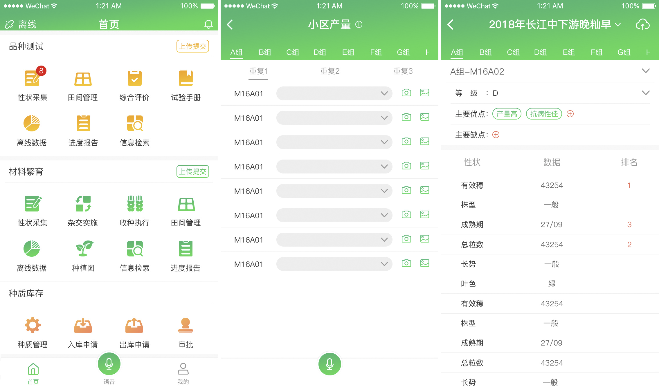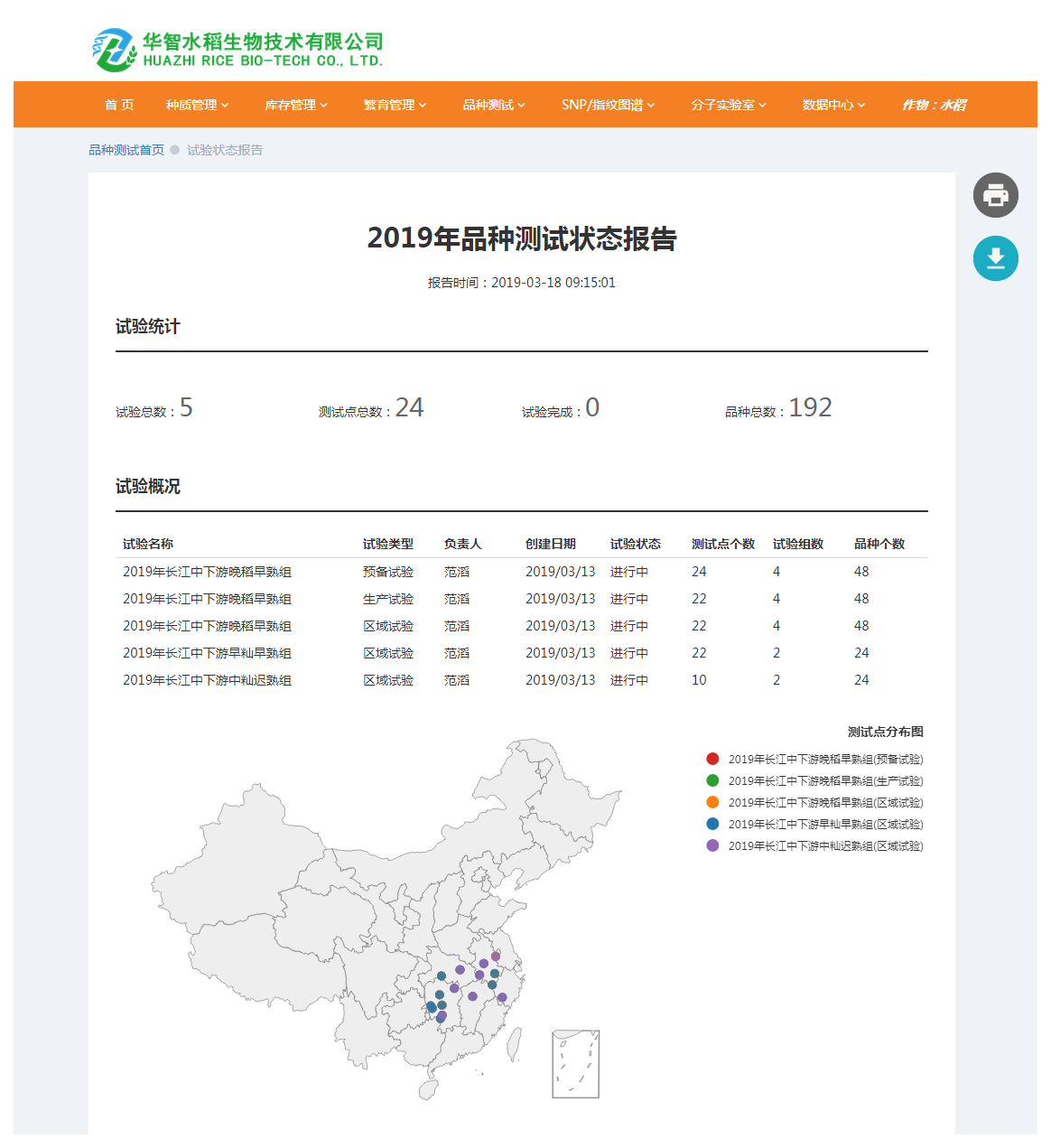 符合品种审定的国家要求,精心设计而成,方便您进行品种测试设计&管理、数据采集;提供一键式报告生成和专业的数据分析功能。