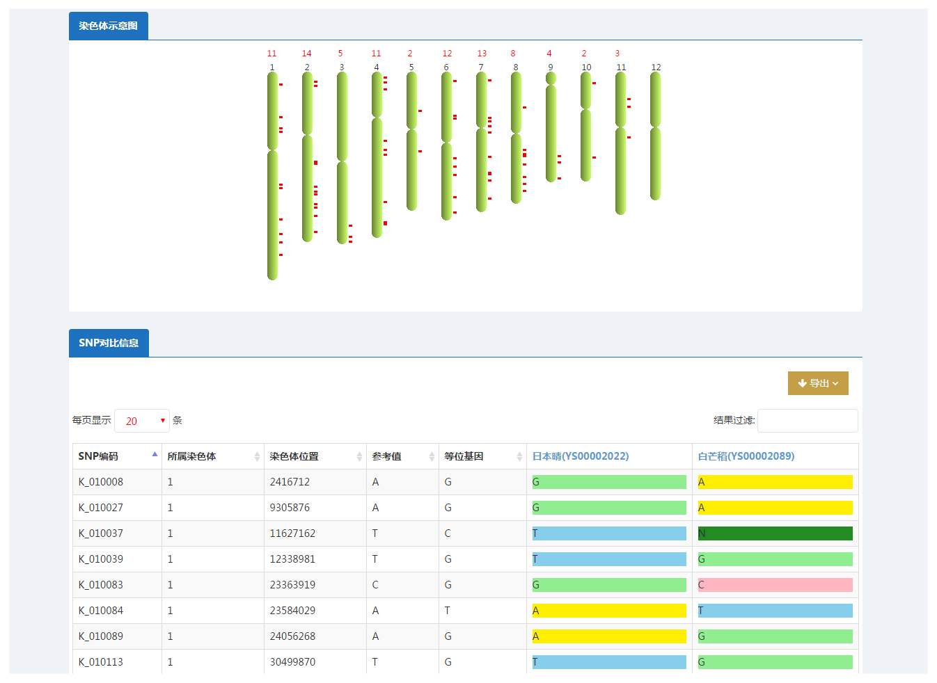 领先的分子育种数据库管理,便捷的标记对比功能,具有分子水平展示种质间相似性与差异功能,专业的遗传距离计算与可视化展示。